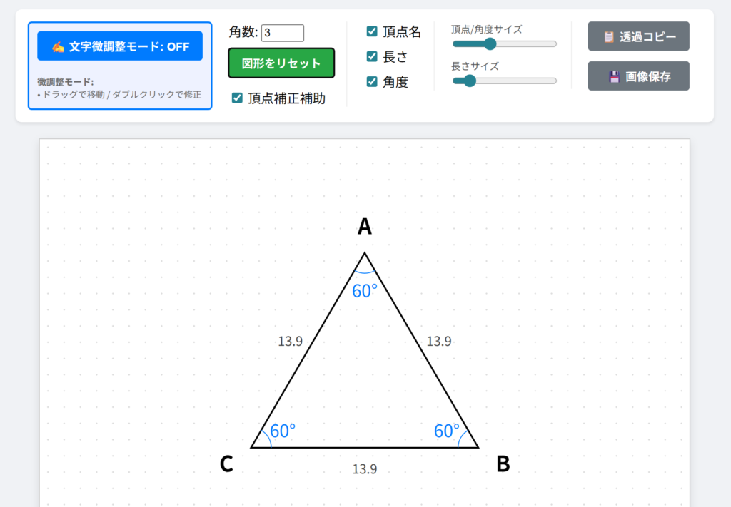 - 頂点やアルファベット、長さは位置や文字を編集可能